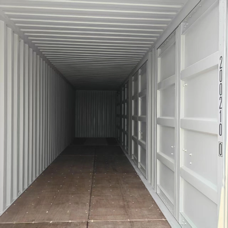 4 সাইড দরজা সহ 40 ফুট উচ্চ কিউব ধারকটি স্ট্যান্ডার্ড 40-ফুট উচ্চ কিউব (40HQ) ধারকটির সমস্ত ফাংশন এবং বৈশিষ্ট্যগুলি ধরে রাখে। তদতিরিক্ত, পার্শ্ব-খোলার নকশা দ্রুত লোডিং এবং পণ্য আনলোডিং সক্ষম করে; এটি ধারকটির অভ্যন্তরে পণ্যগুলি পরীক্ষা করার জন্য আরও দৃষ্টিভঙ্গি সরবরাহ করে; যদি পার্টিশন কিটগুলির মতো কিছু অতিরিক্ত আনুষাঙ্গিক সজ্জিত করা হয় তবে এটি সহজেই বিভিন্ন কার্যকরী অঞ্চল সহ একটি পাত্রে রূপান্তরিত হতে পারে। পাশের দরজাটিও পৃথকযোগ্য, এবং কাচের দরজা, উইন্ডো এবং রেলিংয়ের মতো অন্যান্য অতিরিক্ত আনুষাঙ্গিক যুক্ত করে এটি আরও সহজেই একটি বাড়িতে রূপান্তরিত হতে পারে।